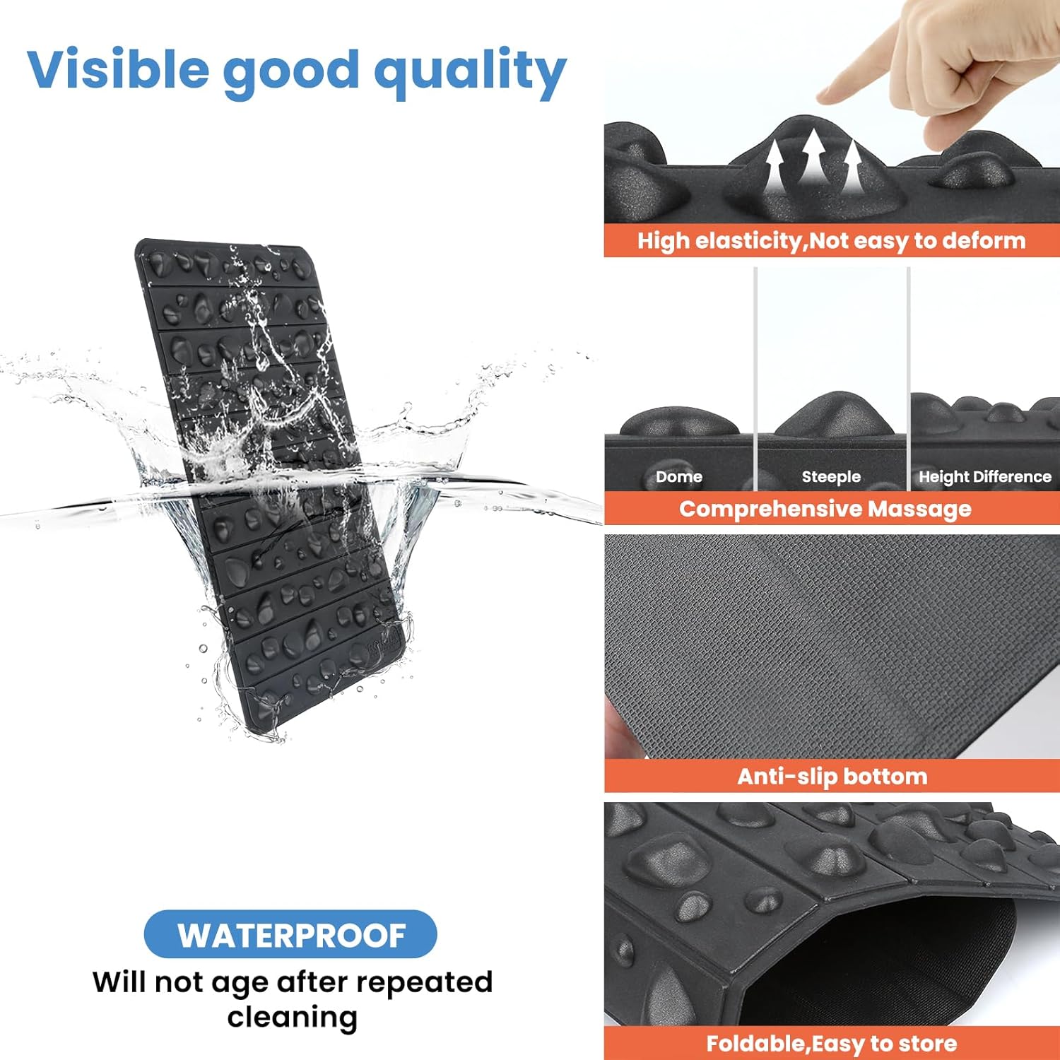 🦶【𝐍𝐞𝐰 𝐃𝐞𝐬𝐢𝐠𝐧】Foot massage pad adopts a high-rebound particle convex design and will not collapse.Compared with the pain caused by other hard plastic particles and rock mat,Smartang’s foot reflexology mat allows you to perform foot massage comfortably.