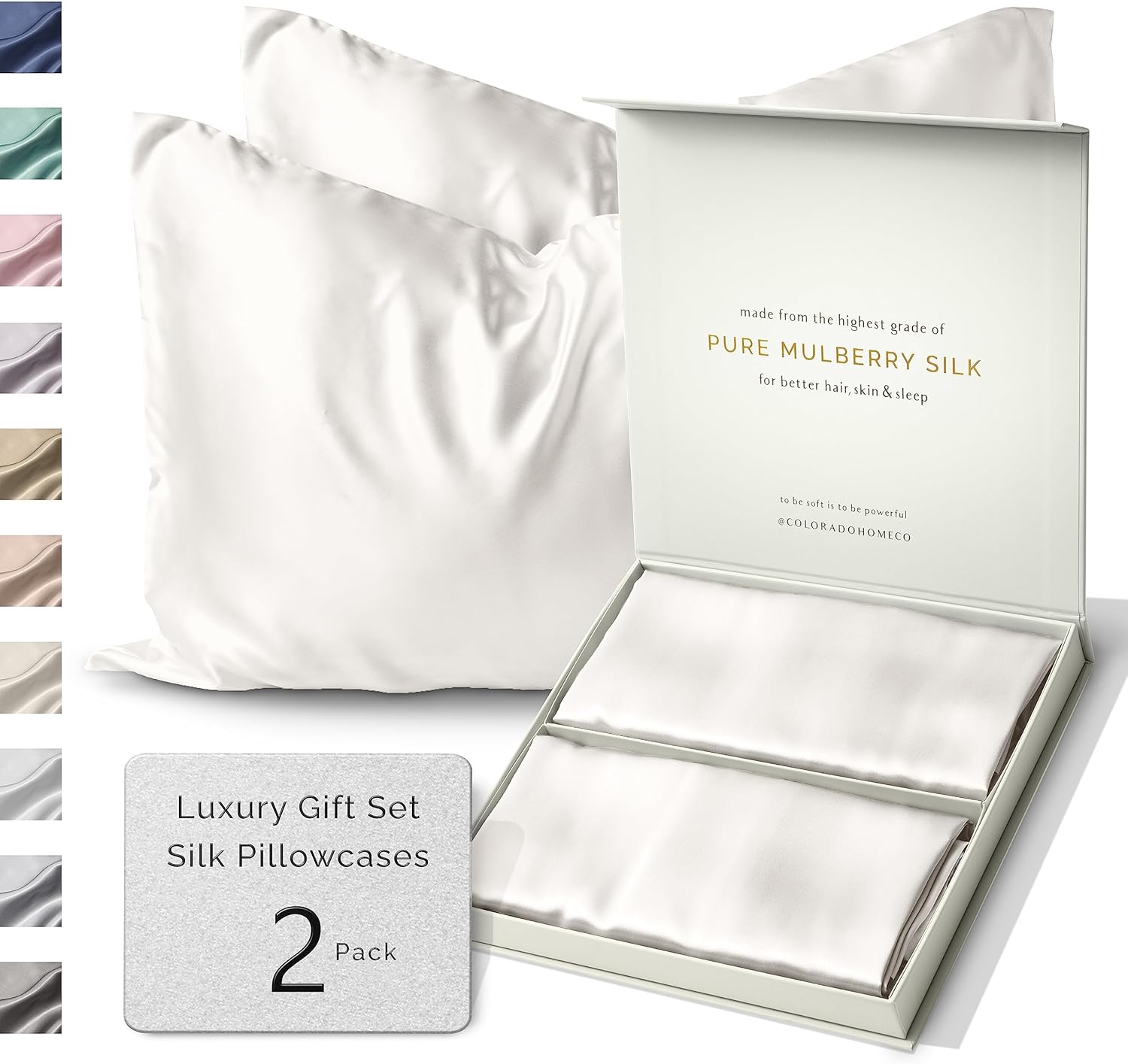 🎁 AMAZON’S MOST GIFTABLE SILK PILLOWCASE: Delight your loved ones with the gift of luxury and comfort. For Christmas, stocking stuffers, birthdays or anniversaries our special gift box makes it perfect for any occasion. 19 colors available including pink, many shades of blue, black, pure white pillow cases and many more.
