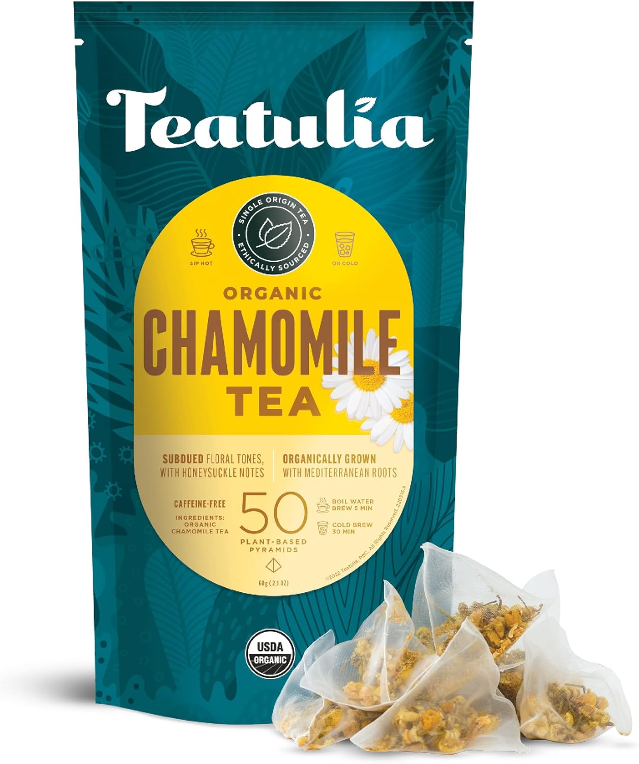 50 PYRAMID TEA BAGS: Each premium tea bag is filled with whole leaf tea for the same quality as loose leaf, in a pre-measured sachet tea bag. Enjoy the full flavor of our choice camomile tea.