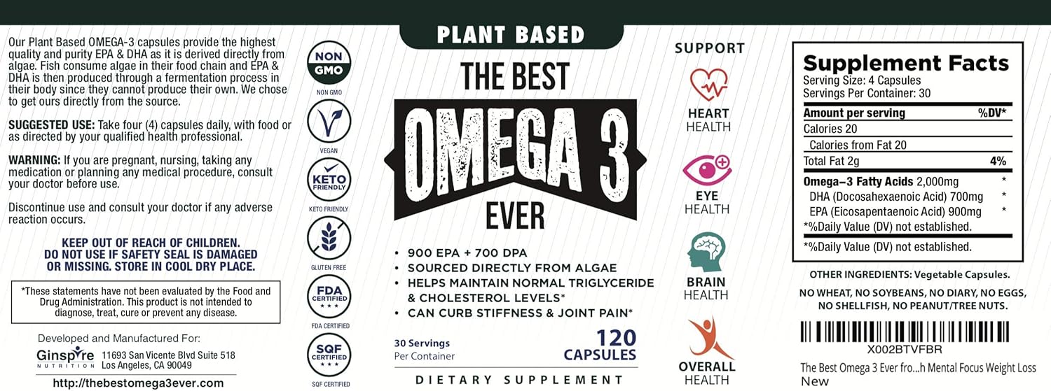With 2000mg of omega-3s, The Best Omega 3 Ever provides the same heart benefits of traditional omega-3 supplements and oils but without the unpleasant fishy aftertaste and impurities associated with some omega-3 fish oils. Why? Because our supplement is plant-based, not fish-based.