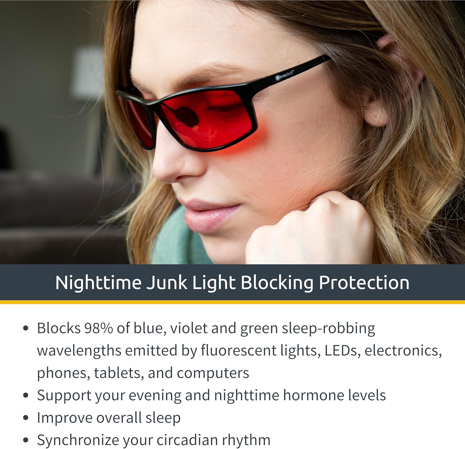 Junk light impacts photoreceptor cells in your eyes, and suppresses the natural production of of the sleep hormone, melatonin, which throws off our body’s internal clock, disrupting our ability to sleep deeply and restfully. Junk light also emits a unique glare that impacts your retina causing eye strain, headaches, and physical and mental fatigue.