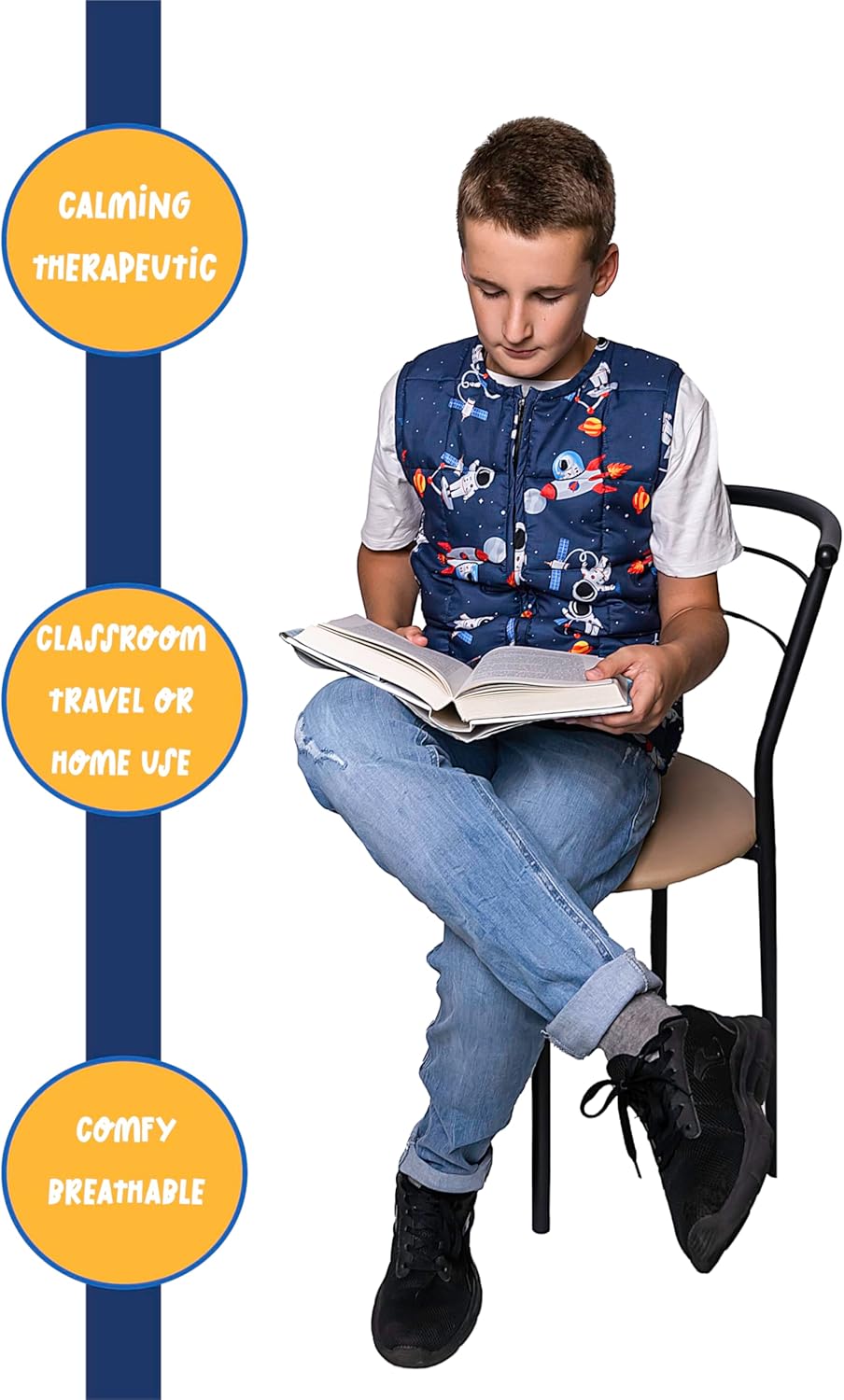 Incorporate this weighted vest into your child’s sensory integration products for school and bring it along on car rides to create a more comfortable travel experience for your young sensory seeker. Tailored for Comfort and Effectiveness. Comfortable Sizing: Available in three different sizes, ensuring a comfortable fit. Please refer to our sizing guide before making a purchase