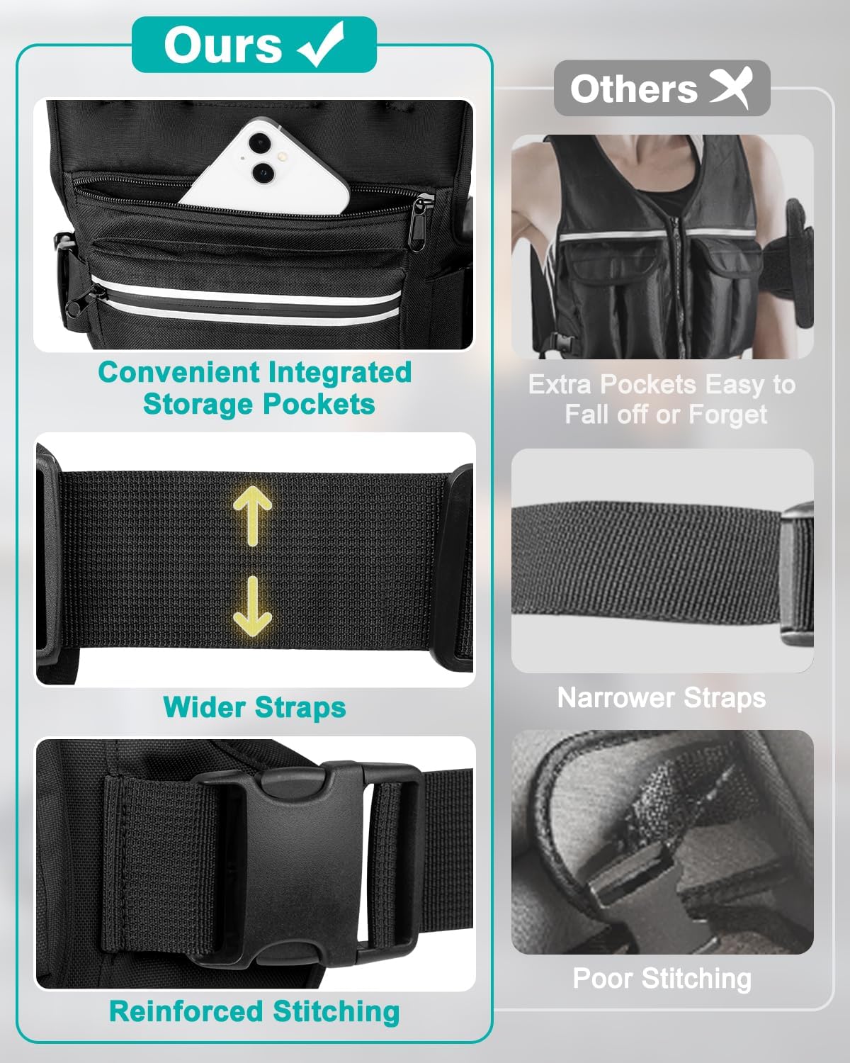 Improve Workout: This body weighted vest is an ideal choice to your daily workout routine, which is great for running, walking, cycling, strength training, muscle building, weight loss, hiking walk the dog and so on. Our weighted vest has reflective strips on the front and back to increase your visibility in low light conditions, safer at night.