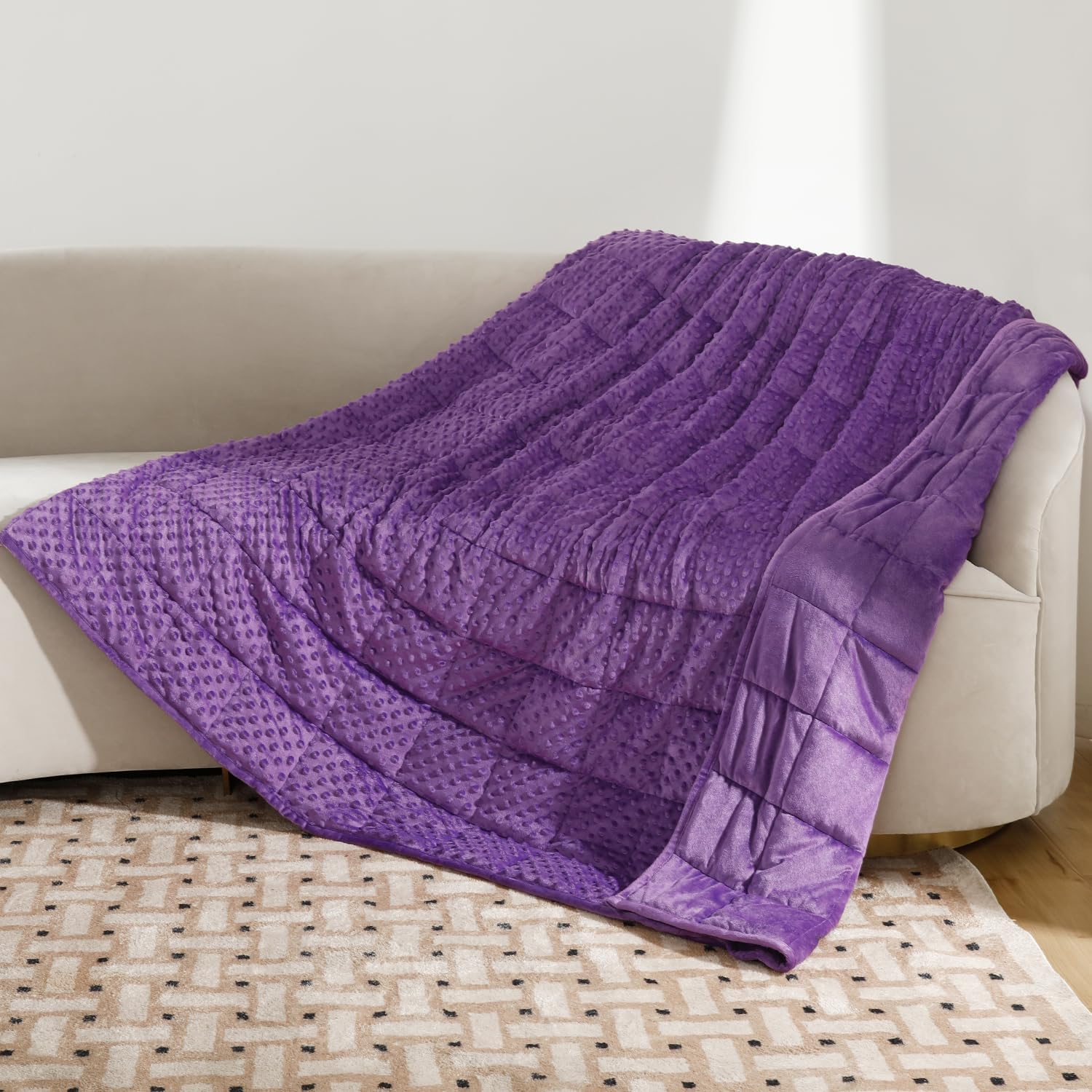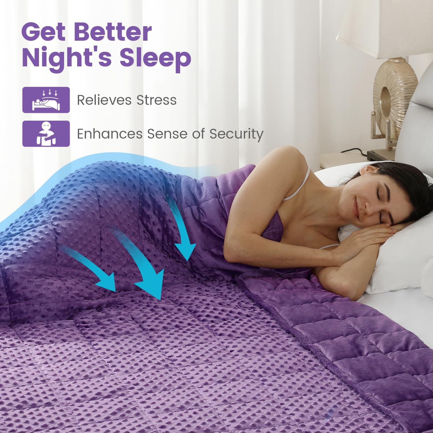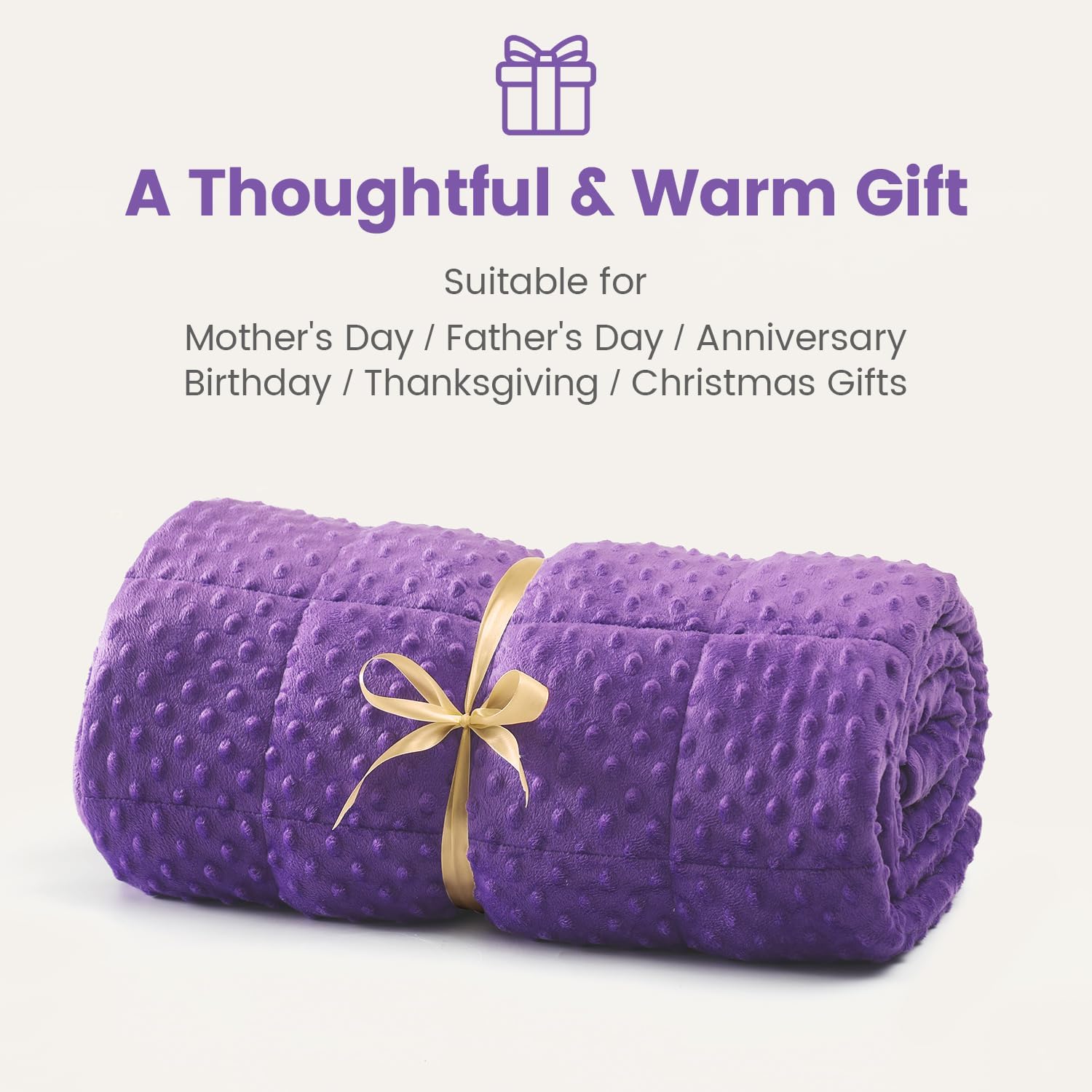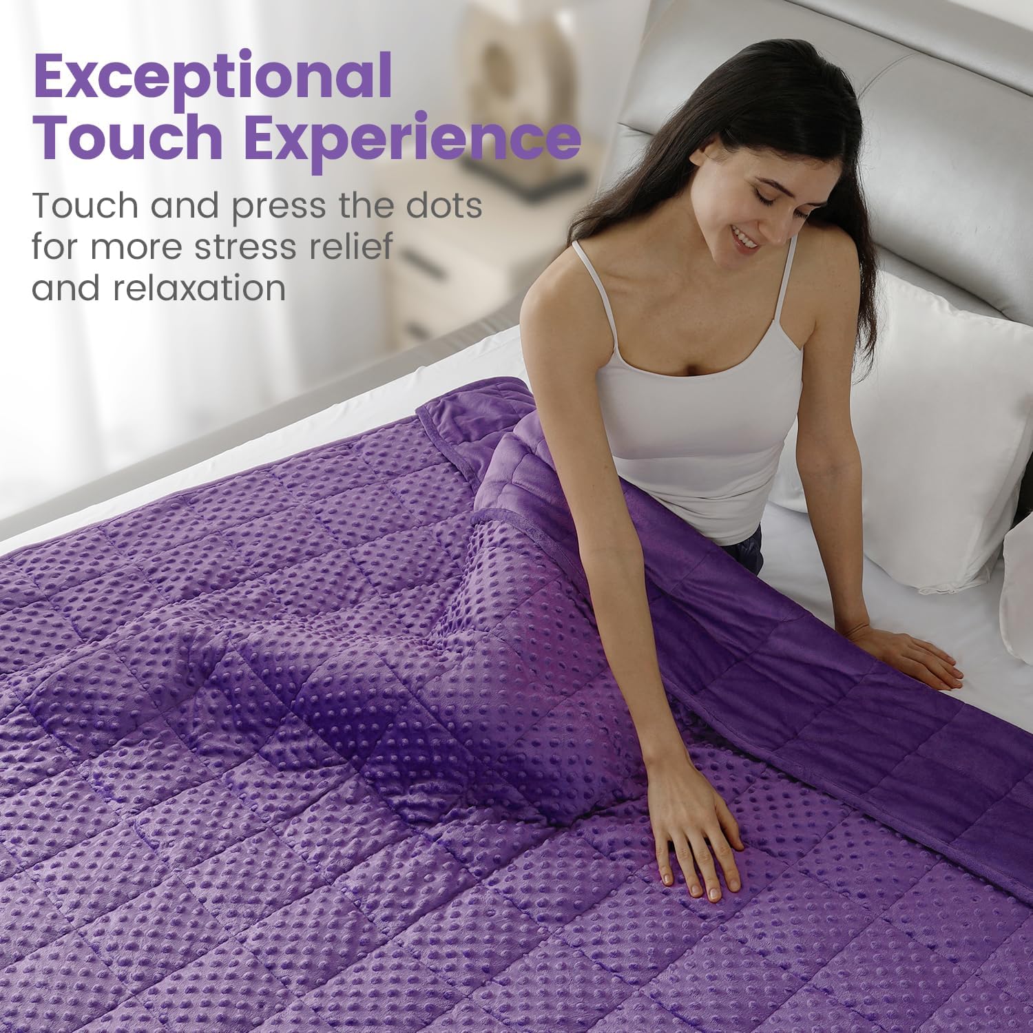 Stress Relief & Better Sleep: Our weighted blanket is designed with pressure bubbles to give you an extraordinary touch experience. Its raised dot design will help you relieve stress faster and relax efficiently. Meanwhile, the weight of the blanket provides a feeling of security and comfort, replicating the feel of a warm embrace, promoting excellent quality sleep, making it your close sleep companion