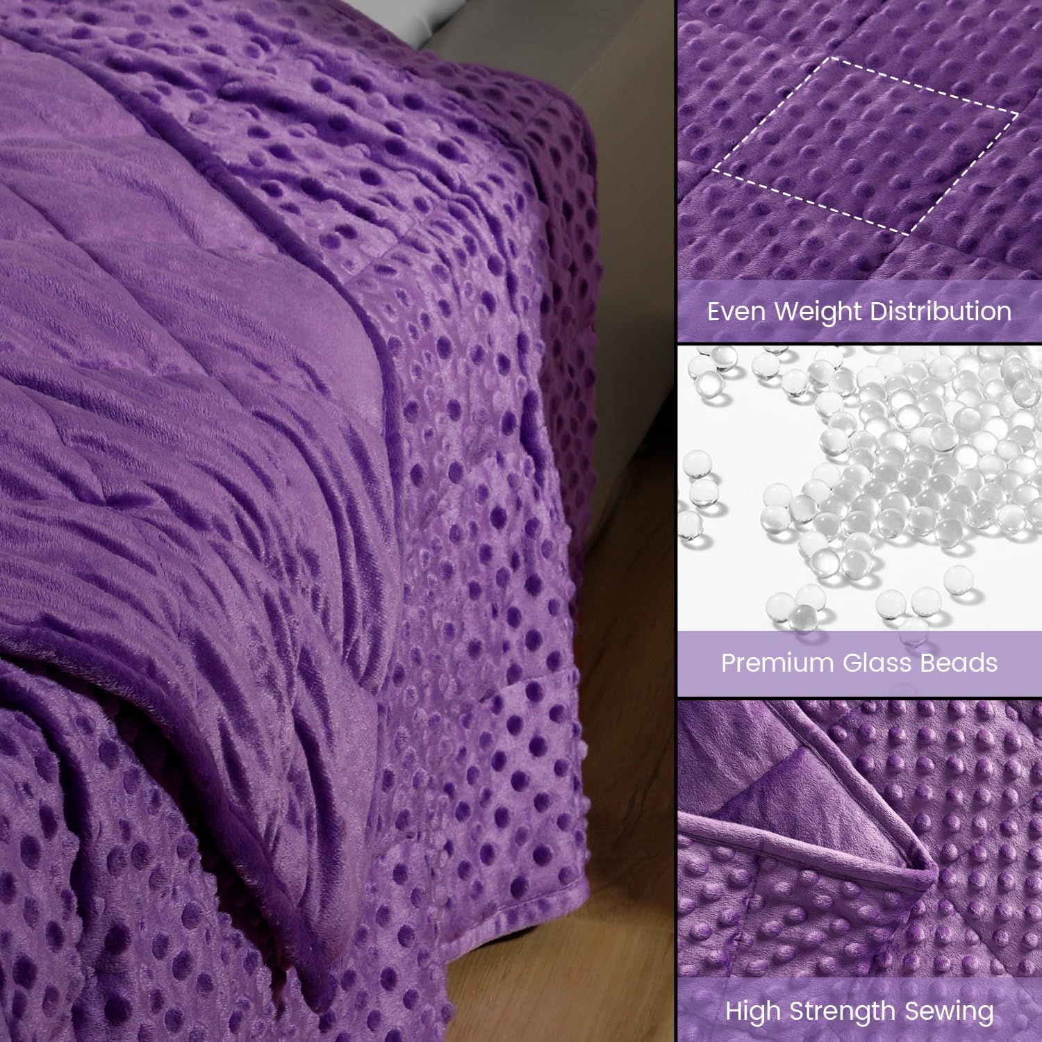 Premium Weighted Blanket: The Bubble Pressure Weighted Blanket is made from plush, soft crystal velvet, suitable for all seasons. It contains 0.88mm hypoallergenic, non-toxic ceramic beads, evenly distributed within small squares for pressure dispersion. An extra layer of breathable microfiber minimizes bead leakage and noise, preventing bead tearing and spillage, thereby boosting durability and comfort