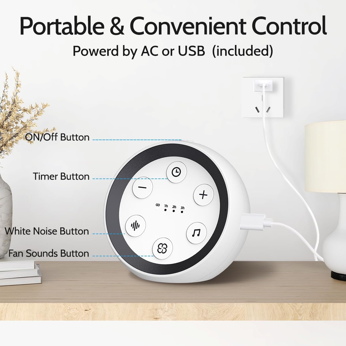 ❤️【Easy to Use and Safety Assurance】The white noise machine has passed FCC, CE and RoHS certification, so there is no need to worry about any accidents about the product. Plug the product into the socket, no need to press the buttons too hard, just press the button gently, ready to go. In addition, we provide 365-day satisfaction purchase guarantee, if the product has quality problems, please contact us for a new one replacement.
